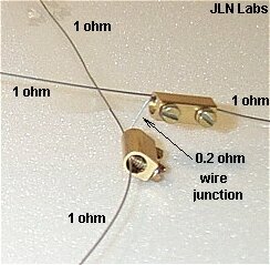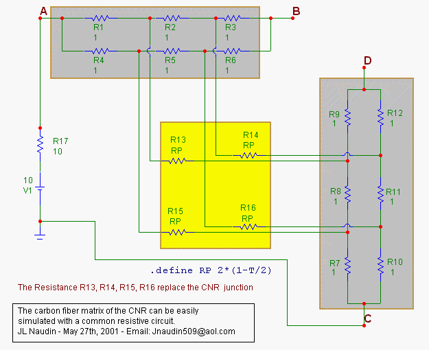 The strips of carbon fiber have been replaced by resistances, I have used two tungsten resistive wires ( 3 ohms each ) to simulate two carbon fiber filaments for each branch ( see below ).
