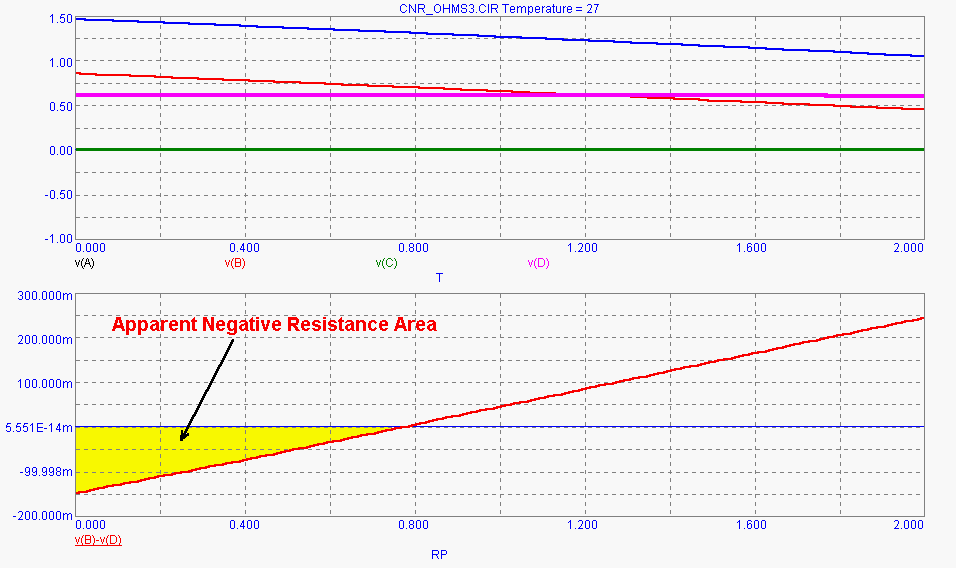 The Chung's Apparent Negative Resistance Effect can be reproduced also with a common resistive bridge. This has been fully analysed during some discussions in the JLN Labs group-list ( see : The Chung's Apparent Negative Resistance can be simply explained by the Ohms Law ? )