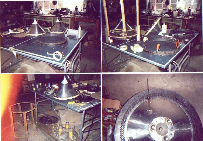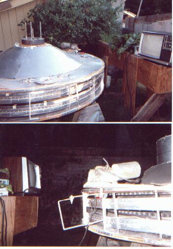 " The bottom right was the cover I used for the top. I finished the device only to find some more nada. During this period of time I had the good fortune to meet Dan Dial. I had decided to spend the winter in San Diego bugging Dan LaRochelle for any information he might have on the subject and try my hand at using the Enhancer to help people help themselves. This was done with high expectations of huge donations from those getting better all the time. However, most of my prospective clients didn't have any money, but they used the machines anyway and I was able to sell a few I put together myself from kits I purchased from Dan. I along with Bob Thomas left our machines at his place for him to study and maybe get the damn things to work. I returned the following summer with great expectations on making yet a third hfs after working with David in Ontario. Dan decided it was too much out of kilter to do anything with and he also informed me that plastic wouldn't work anyway. Dan now has the plastic domes and I have some of the magnets in my third hfs. This one you already have seen some of the photos of which I have about 150 to date. Don't worry, I won't be sending you these enmasse, but will accommodate anyone on an individual basis. " Tracy.