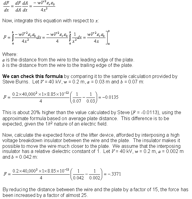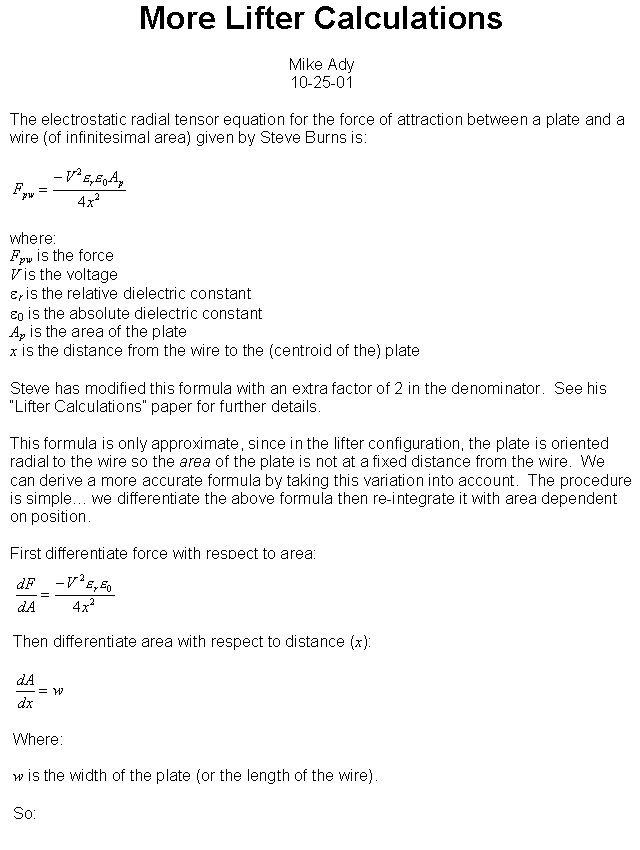 Lifter Thrust Calculations proposal by Steve Burns ( Updated 10-25-2001 )