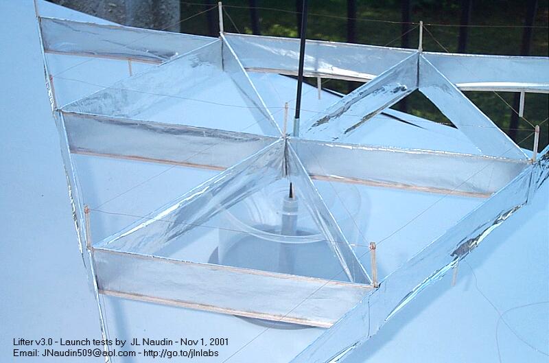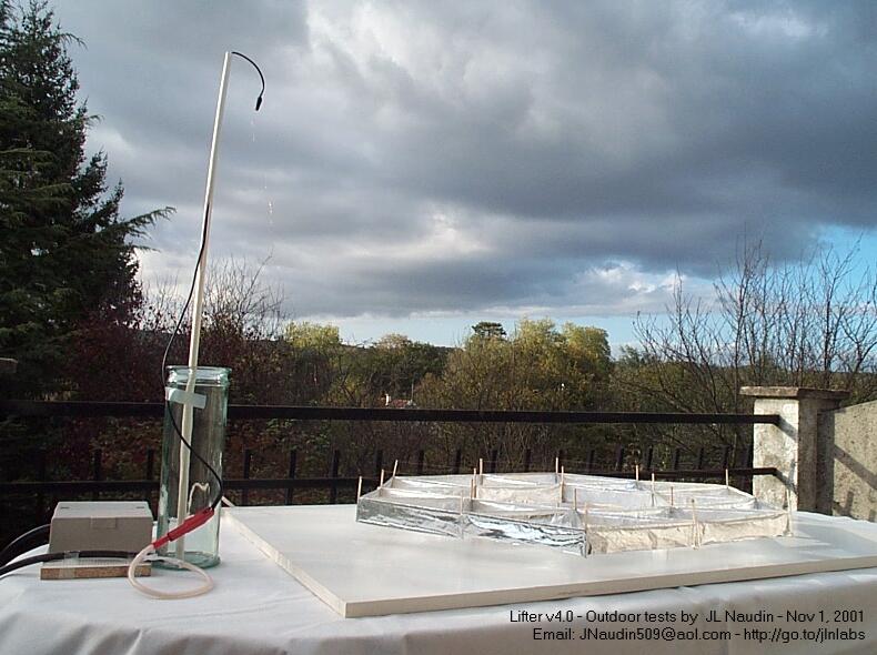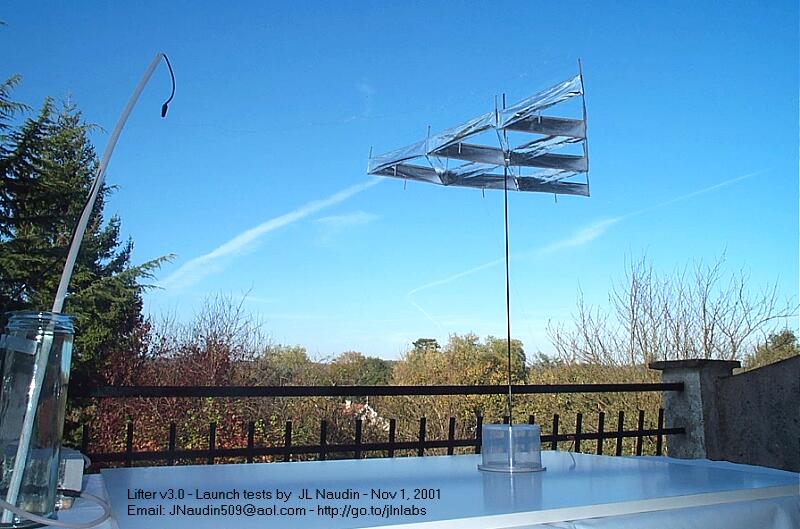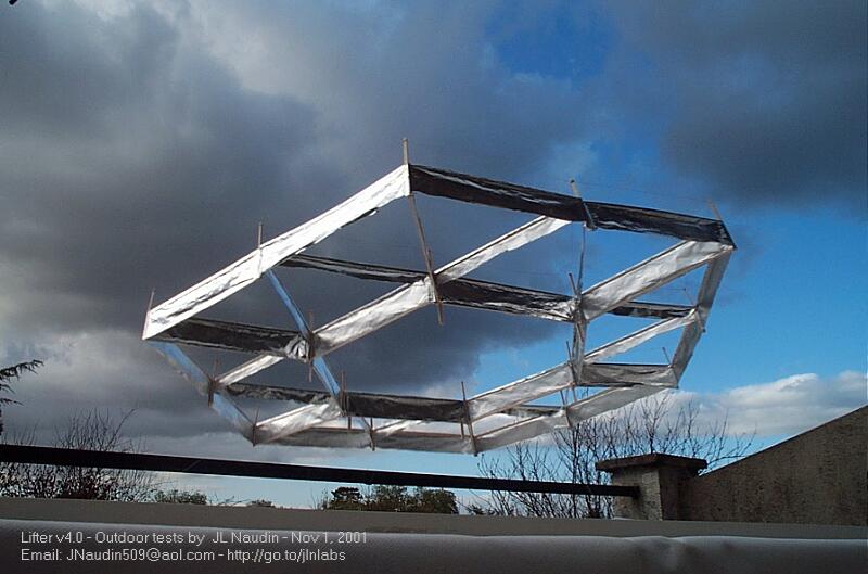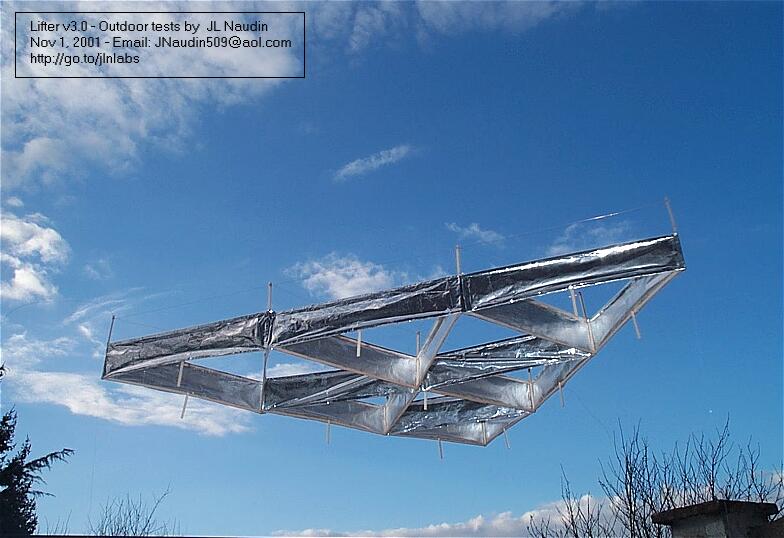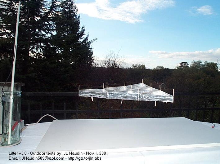 Notes from JL Naudin : It seems interesting to notice that, in spite of the windy weather and the light weight of the Lifters, the hovering phase is stable.