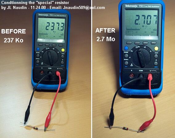 You will find below a method for building yourself a non-linear resistor with a common old carbon composite resistor. This component has some interesting characteristics such as a high resistance in DC and a low resistance at AC High Voltage ( >1KV )....