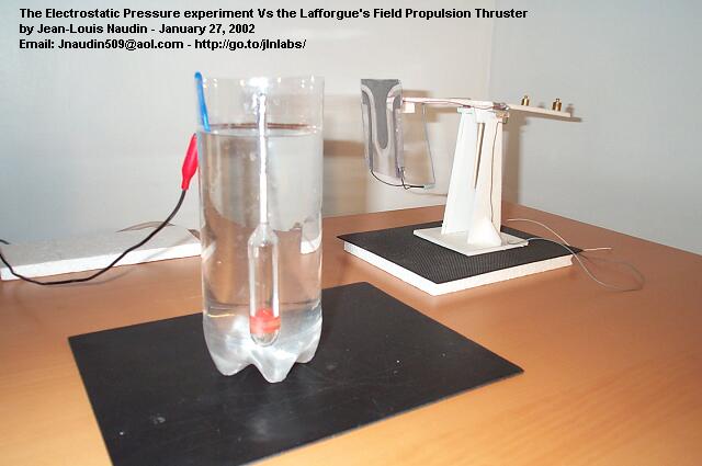I have used the same power supply configuration than the experiment #1 above, the LFPT have been replaced by the Electrostatic Pressure experiment setup with the aerometer.