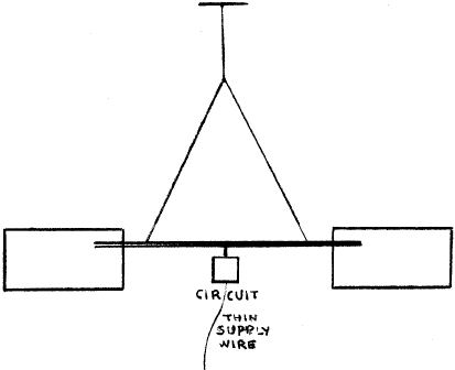 The capacitor used in this case is a twin thin one, made of two thin plates of copper 0.1 mm nominally), having a double-sided self-adhesive tape as a dielectric, of thickness 0.35mm.. The dimensions of this structure are 9.3 by 14.7 cm/ Two rectangular plane capacitors are used with their centers of the rectangles placed 57.4 cm apart, by a lightweight wooden beam.