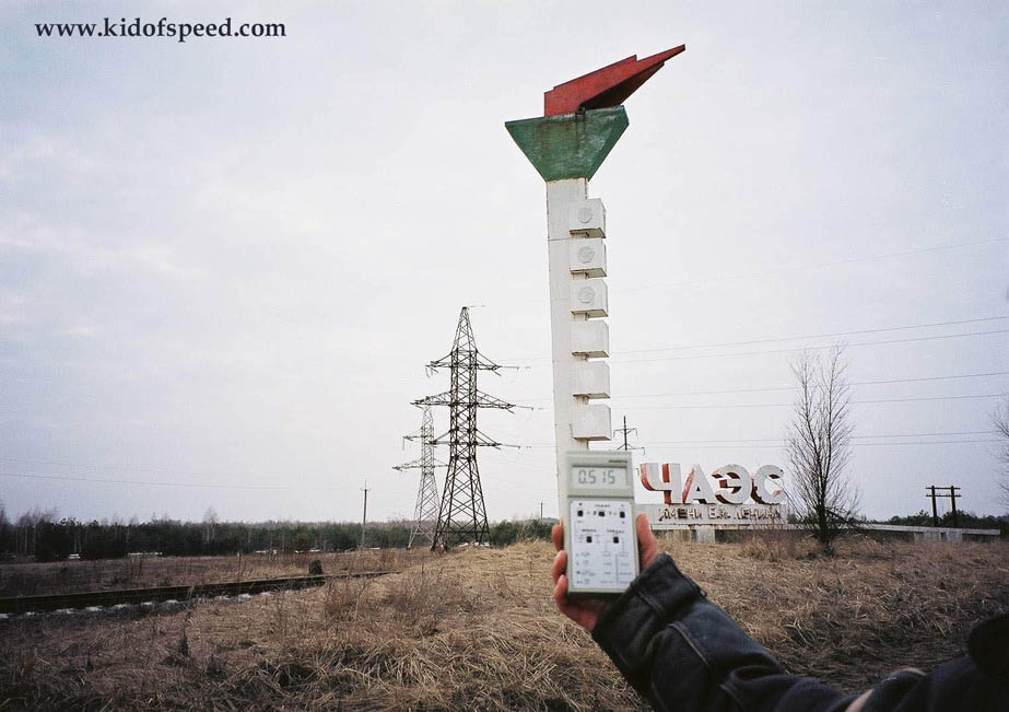 Usually, beeping of dosimeter speed me up and I pass this part of road as fast as road condition allow. The place in front of me called red or magic wood. In 1986 this wood has been red with radiation and then they cut it off and left there and bury under 1 meter of earth. As you can see, on asphalt things not bad, but if I step 10 meters forward, my dosimeter will run out of scale, if I walk few hundred meters towards reactor, then I will find 3 roengen. If I keep walking all the way to reactor, then at the end of a journey I will glow in a dark. May be this is why they call it a magic wood. this sort of a magic when one walk in in a biker leather and coming out like a knight in a shinning armour.